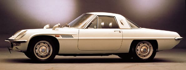 Mazda desarrolla el prototipo de Wankel hasta convertirlo en un motor comercialmente utilizable y presenta su primer coche con motor rotativo, el Mazda Cosmo Sport 110S (en imagen).