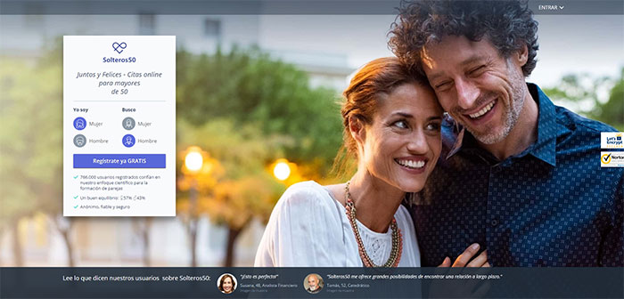 Otra de las páginas para personas mayores de 50 años que quieren encontrar el amor es Solteros50. Aunque esta web esté especializada en citas para personas a partir de una edad en concreto, cuenta con casi 800.000 mil usuarios en activo. Si eres de los que aún se muestra reacio a encontrar el amor en estas webs de citas, debes saber que Solteros50 cuenta con moderadores que se encargan de verificar las identidades de cada usuario y de eliminar aquellos perfiles falsos.