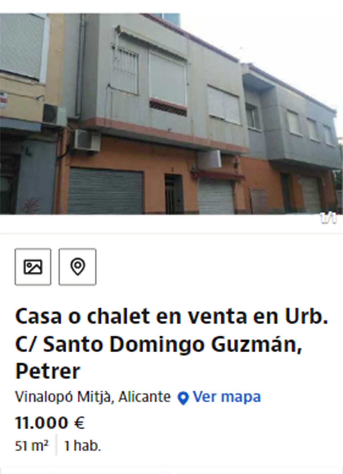 Por 11.000 euros se vende una casa en Pertrer. Es una vivienda ubicada en Alicante que tiene 51 metros cuadrados y una habitación. Se trata de una propiedad compartida y cuenta con buen acceso a servicios y comercios, así como a otros servicios básicos.