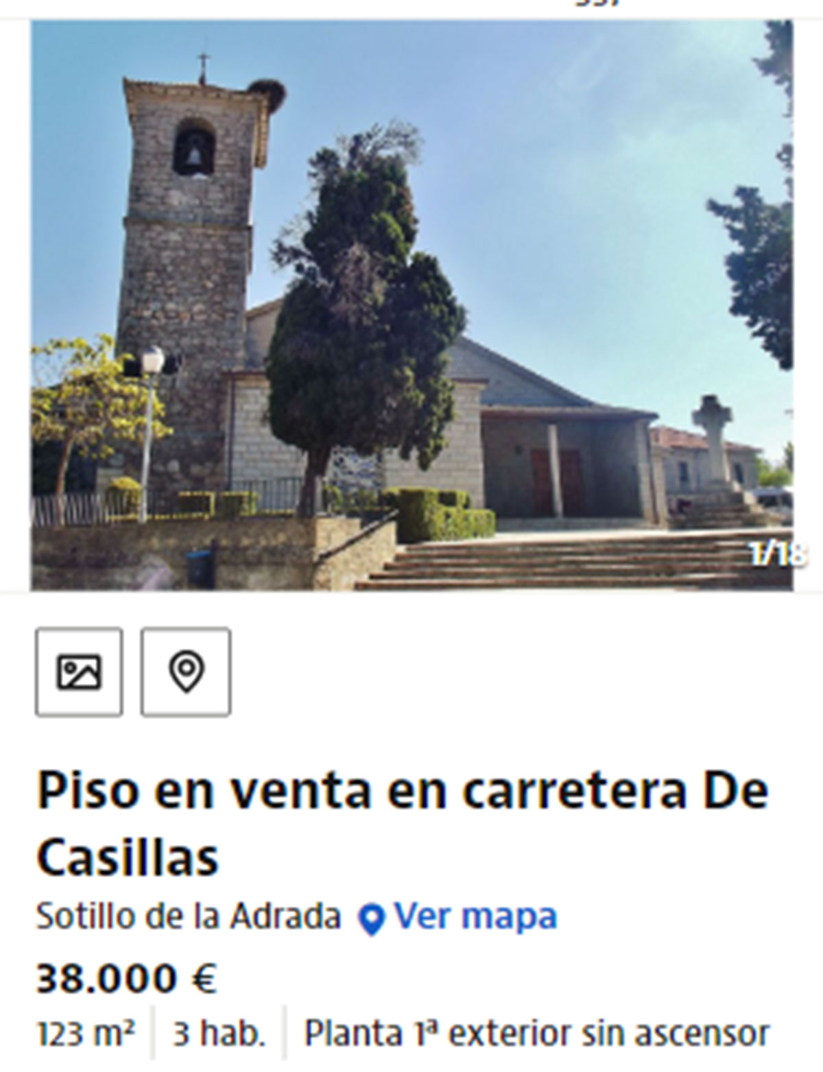 Por 38.000 euros se vende un piso en Sotillo de la Adrada. Es una vivienda que tiene 123 metros cuadrados con tres habitaciones. Se vende la nuda propiedad de la vivienda que está en un primero y tiene un balcón que rodea a todo el piso. Cuenta con armarios empotrados, salón, cocina independiente y baño completo.