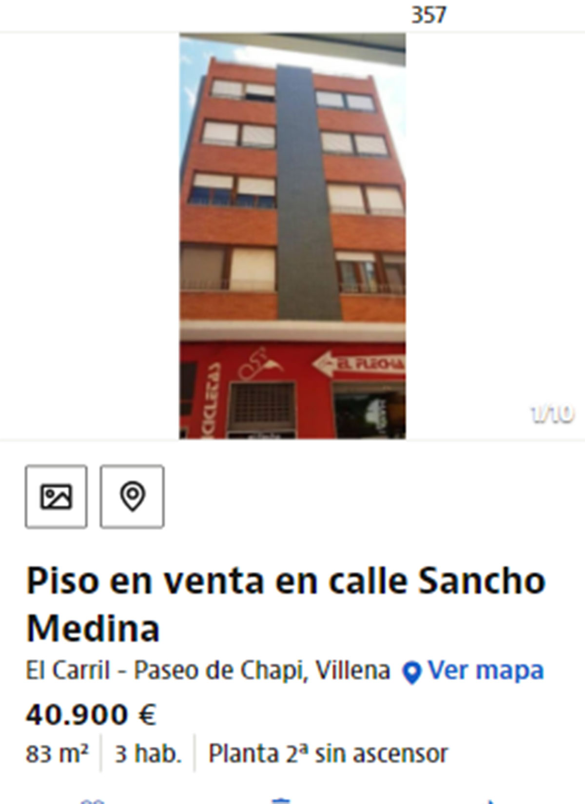 Piso a la venta en Villena por 40.900 euros. Es una vivienda que tiene tres habitaciones en 83 metros cuadrados. Es un segundo sin ascensor que cuenta con buen acceso a los servicios básicos. Tiene un baño y está construida en el año 1977.