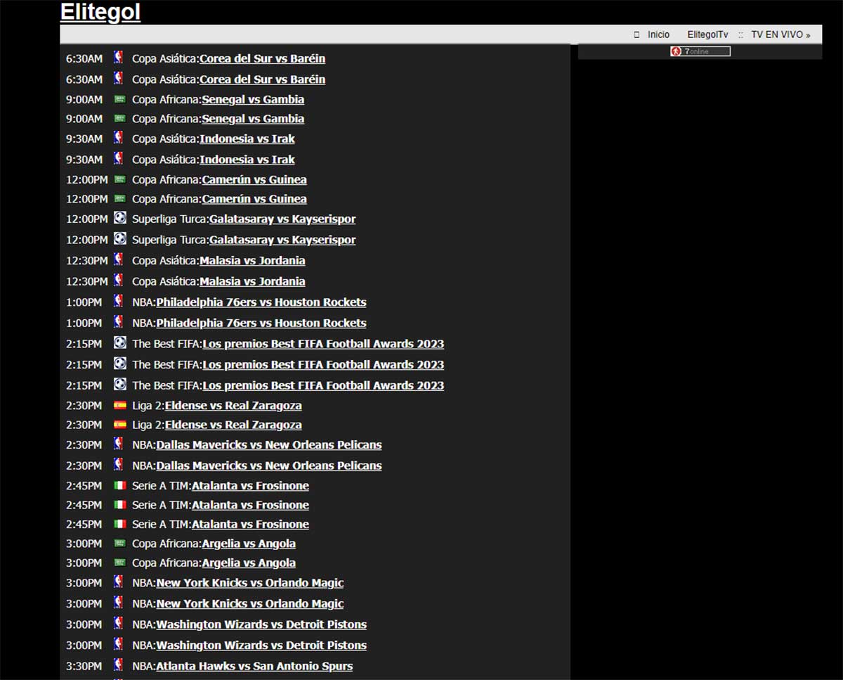 ElitegolTV es una de las webs más conocidas para ver el fútbol gratis por internet. El único problema que tiene es que su dirección web cambia constantemente, pero siempre está disponible. Desde esta página podrás encontrar partidos en directo y en diferido de las principales ligas y competiciones. Además, no solo ofrece fútbol, sino que también puedes ver competiciones de tenis, Fórmula 1 o MotoGP.