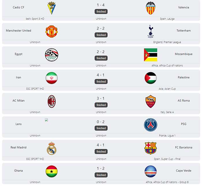 La web de Kora Online TV es una de las que mejor funciona. Su web no tiene casi publicidad, por lo que la experiencia de usuario es muy buena. En su menú principal puedes encontrar un calendario con los mejores partidos del día que incluyen un enlace directo para ver la retransmisión cuando sea la hora. Además, también puedes consultar los resultados de los partidos del día anterior y los horarios de los partidos del día siguiente.