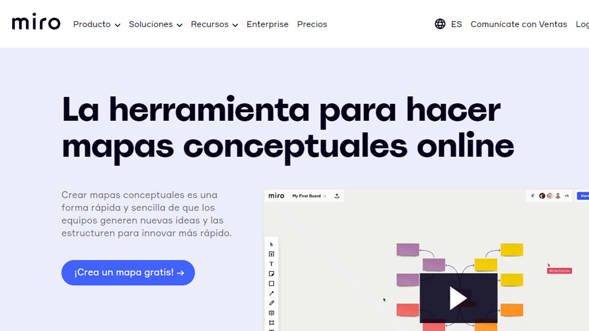 Miro es una herramienta con una sección especializada en la creación de mapas conceptuales de una forma rápida y sencilla.