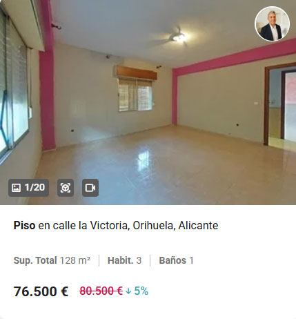 En Orihuela (Alicante) se vende un piso por 76.500 euros. El inmueble tiene 128 m² construidos en total, distribuidos en salón-comedor, cocina, tres dormitorios y un baño.