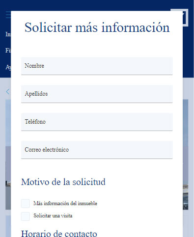Si tras realizar una búsqueda, quieres conocer más detalles sobre alguno de los inmuebles del catálogo, en esta misma pantalla hay una pestaña que dice ‘Solicitar más información’.