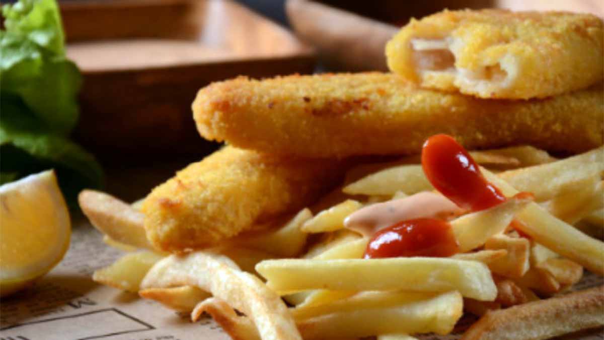 - Después saca los palitos de merluza y las patatas y sírvelos.