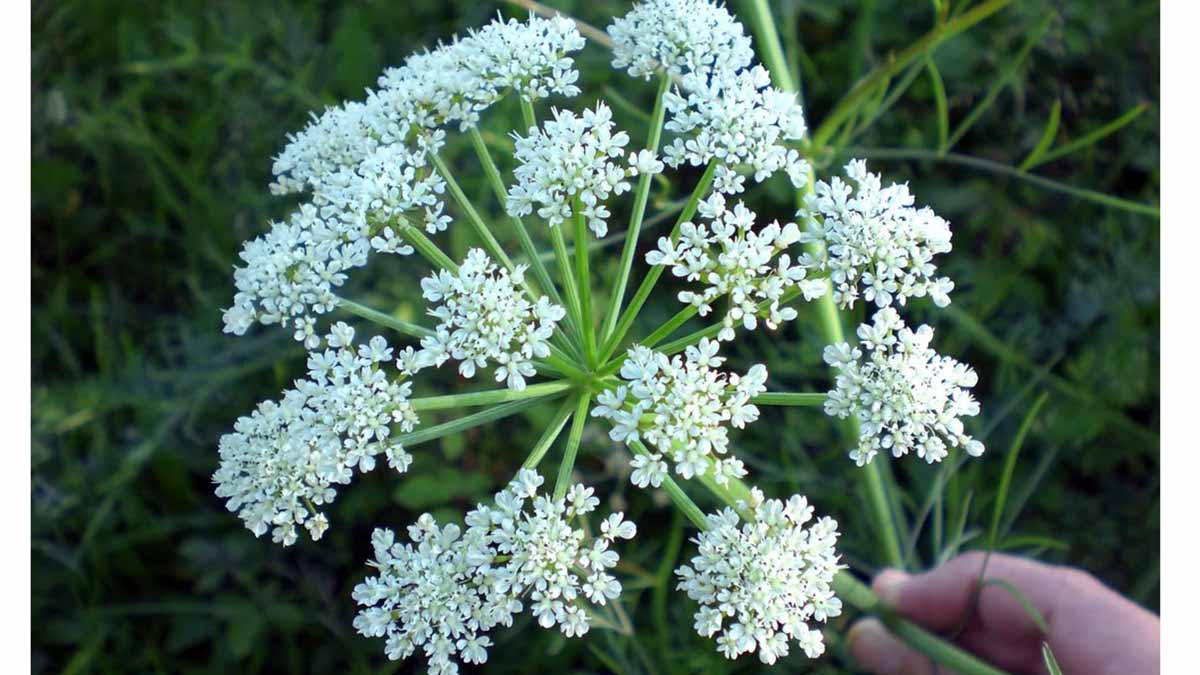 El aspecto de la planta es parecido al perejil que, en primavera, alcanza su máximo esplendor con flores blancas, y la raíz puede confundirse con otros ejemplares como el rábano, el hinojo, apio o la yuca, debido a su color amarillento y alargado.