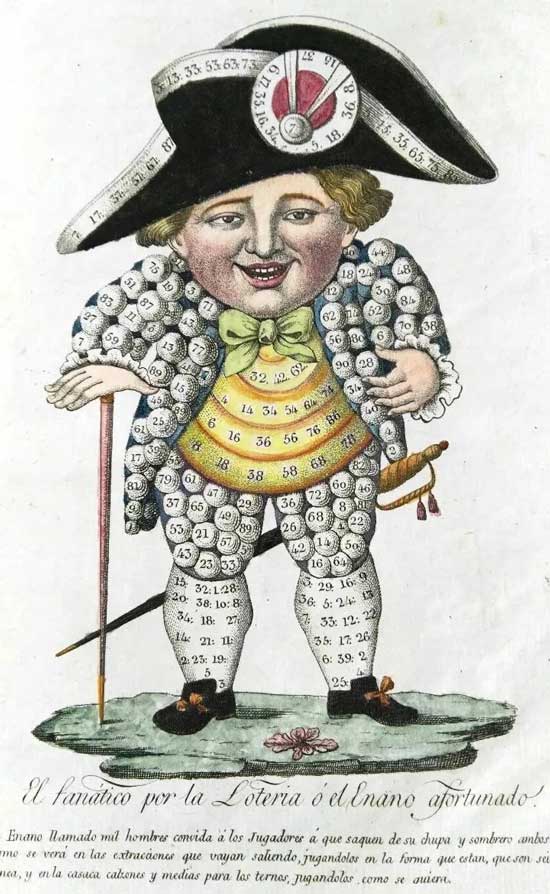 Para promocionar el primer sorteo de la Lotería de Números utilizaron una mascota estampada en los sellos que también servía de amuleto. Esta mascota recibía el nombre de ‘El Enano Afortunado’, ‘El Fanático de la Lotería’ o ‘El Enano Mil hombres’. La apariencia de este personaje era la de una caricatura de un enano gordo que vestía una ropa decorada con bolas de números.