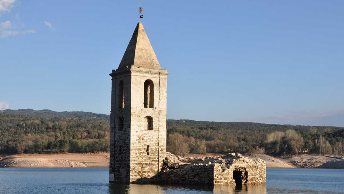 En la comarca de Osona, Barcelona, se construyó el embalse de Sau, que acabó con la localidad de Sant Romà de Sau tras su desbordamiento. Fueron las aguas del río Ter las que ‘escondieron’ todas y cada una de las construcciones de la localidad. A día de hoy, lo más icónico y habitual es ver el campanario de la iglesia emerger de las aguas.