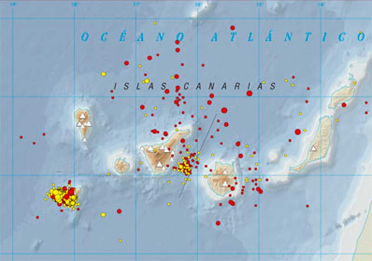 Fuera de la península, concretamente en las Islas Canarias, hay movimientos sísmicos de origen volcánico y no por movimiento de placas.