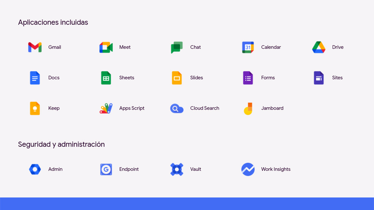Los productos que incluye el espacio de trabajo Google Workspace son las herramientas más conocidas de la compañía: