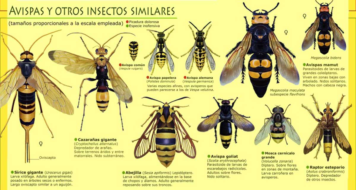 Además de la avispa europea y la asiática, es importante que sepas diferenciar entre otros tipos de avispas que conviven en España y Europa. Algunas de ellas son las siguientes: