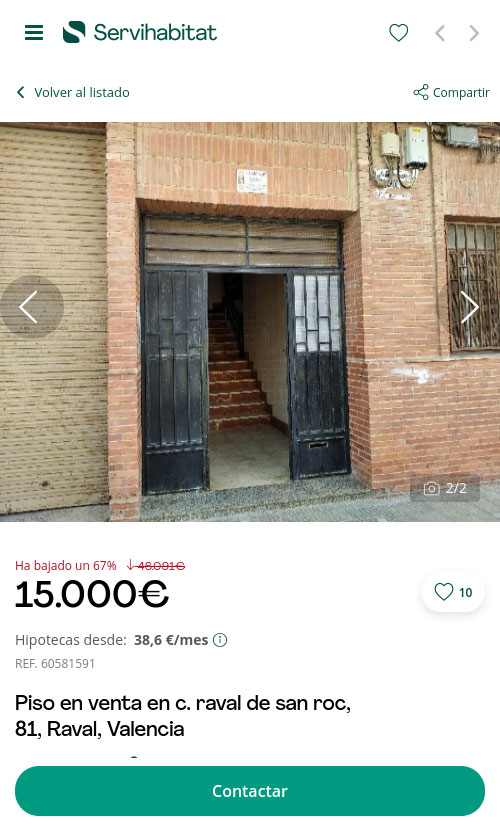 Más de 100 viviendas de banco a la venta a partir de 7.500 euros y por menos de 100.000. Este es el catálogo de pisos y casas que tiene el portal inmobiliario Servihabitat disponible en la provincia de Valencia, tanto en pueblos de interior, como en la capital y cerca de la costa. Se trata de viviendas que tienen varias habitaciones y uno o más baños y que, en el caso de los precios más baratos, necesitan reformas previas para entrar a vivir. Si alguna de estas ofertas te interesa, puedes consultar con detalle el proceso acerca de cómo comprar un piso en Servihabitat para convertirte en propietario de una vivienda en la costa del Levante.