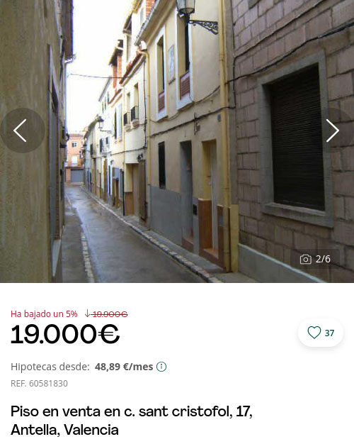 En esta otra información puedes consultar esta otra oferta de pisos de banco, esta vez de Altamira Inmuebles, en la que se venden pisos a una hora de Valencia por menos de 80.000 euros.