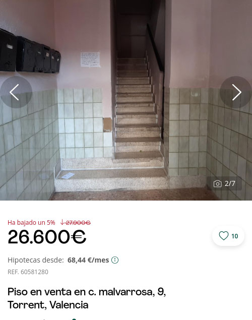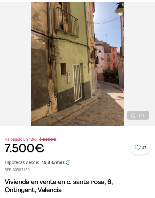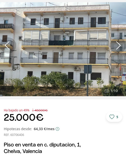 Los pisos más baratos que se venden en Servihabitat en la provincia de Valencia arrancan con precios a partir de 7.500 euros. A continuación puedes ver algunos ejemplos de estos pisos y casas: