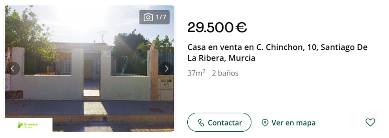 En Santiago de la Ribera (Murcia) se vende este chalet unifamiliar por 29.500 euros. Se trata de una vivienda de 37 m² de superficie total construida, distribuida en un salón-comedor, cocina, una habitación, terraza y un baño.