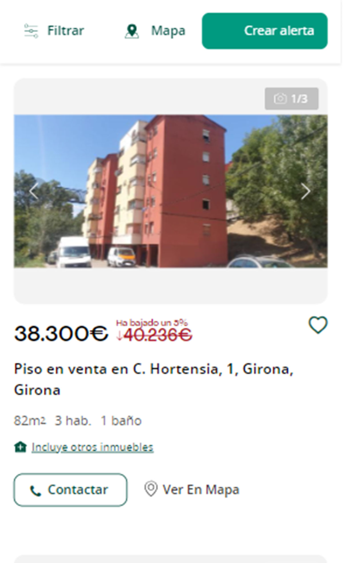Piso en venta por 38.300 euros en Girona. Es una vivienda de 82 metros cuadrados con tres habitaciones y un baño.