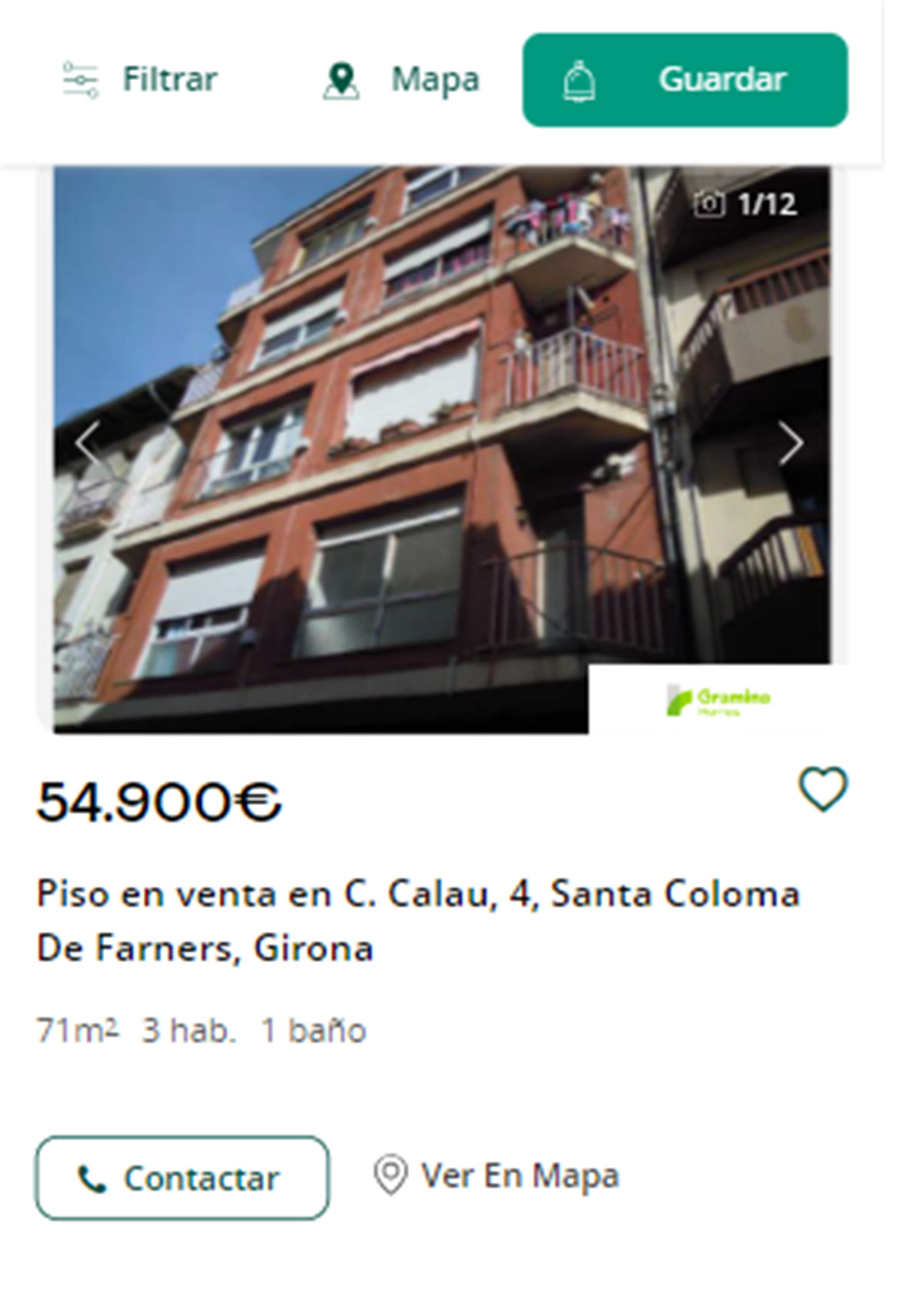 Piso a la venta por 54.900 euros en Santa Coloma de Farners. Es una vivienda de tres habitaciones y un baño en 71 metros cuadrados.