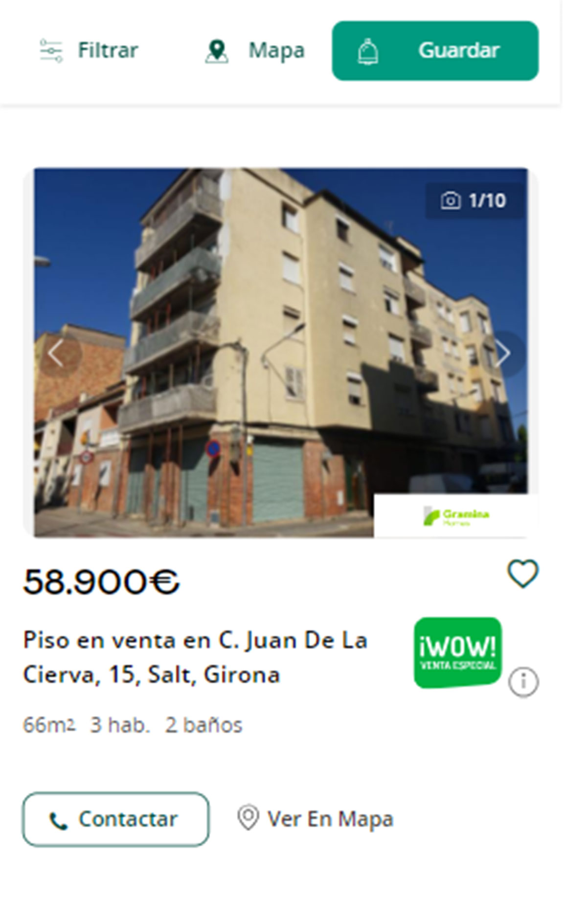 Piso en venta por 51.800 euros en Salt. Tiene 61 metros cuadrados de superficie.