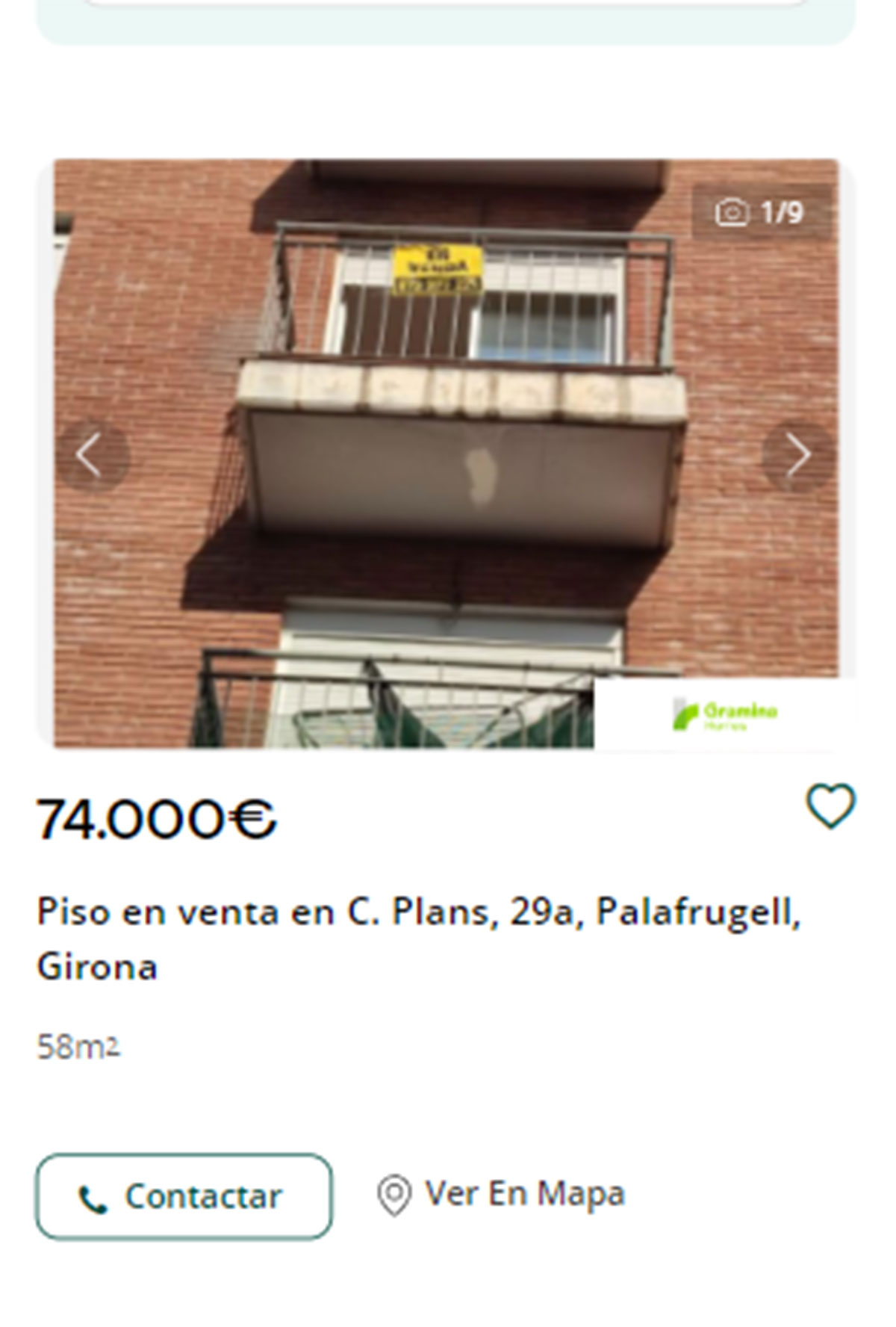 Piso a la venta en Palafrugell por 74.000 euros. Es una vivienda de 58 metros cuadrados de superficie.