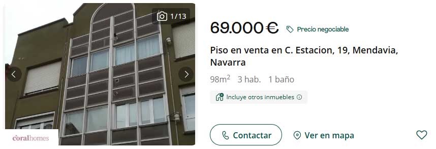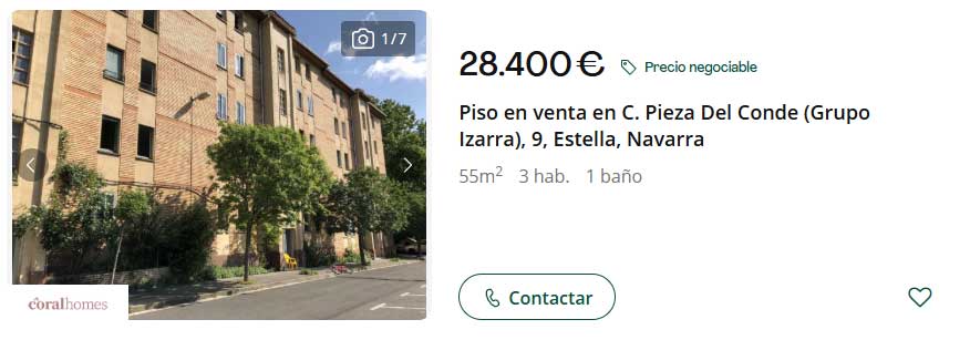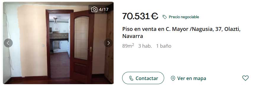 Por un precio ligeramente superior, sin sobrepasar los 45.000 euros, hay una mayor variedad de viviendas en el catálogo de pisos en Navarra propiedad de Servihabitat.