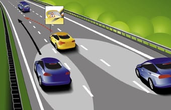 Además, emite una señal de advertencia en caso de detectar vehículos en las vías vecinas con el fin de alertar al conductor ante maniobras de adelantamiento o desplazamientos en los que se vea reducida la visibilidad por los ‘angulos muertos’ y así reducir el peligro que conlleva no visionar los vehículos que se acercan por detrás cuando se realizan maniobras de desplazamiento entre carriles.
