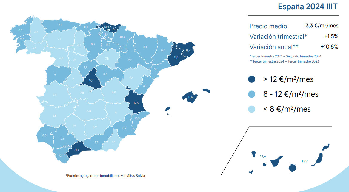 Según el estudio del último trimestre de 2024 realizado por Solvia Market View, la inmobiliaria prevé un aumento de entre el 5 % y el 7 % en el precio de la vivienda al finalizar el año. Esta tendencia se moderaría ligeramente al empezar el 2025, con un crecimiento de entre el 4 % y el 5 %.