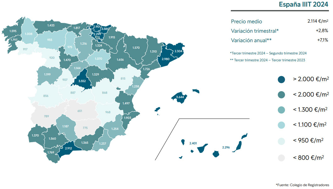 En contraposición, las zonas más económicas fueron Badajoz, Jaén y Ciudad Real, donde el precio se mantuvo por debajo de los 800 €/m2, evidenciando una mayor asequibilidad en estas regiones.