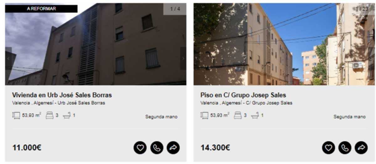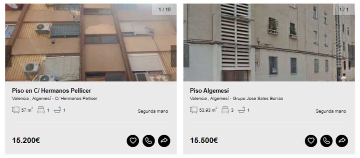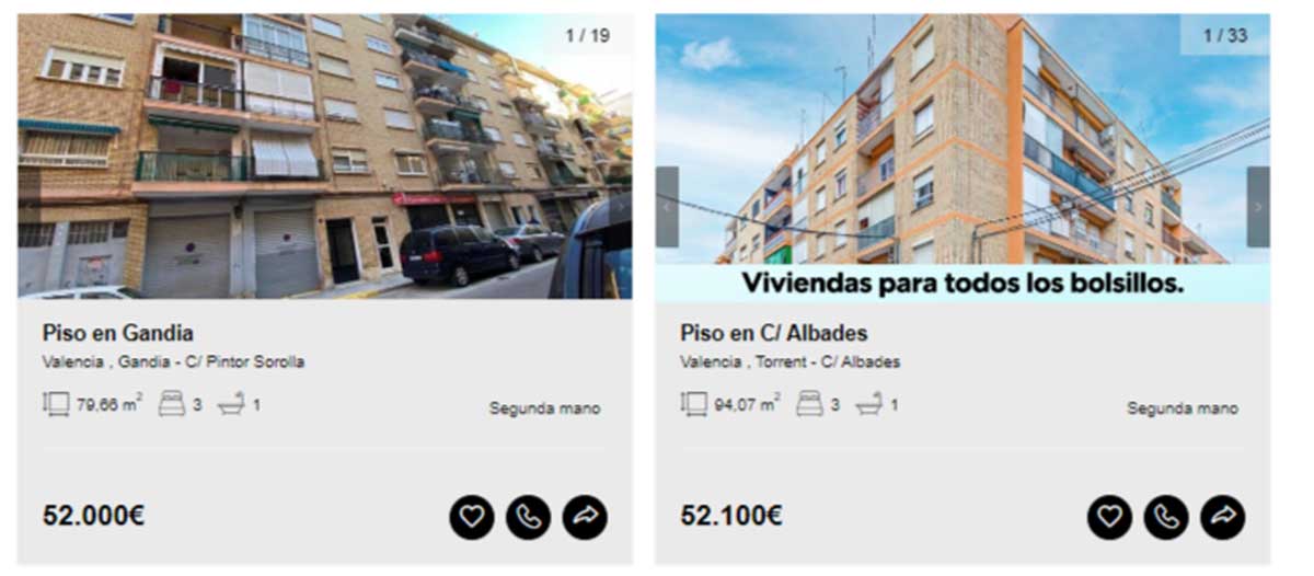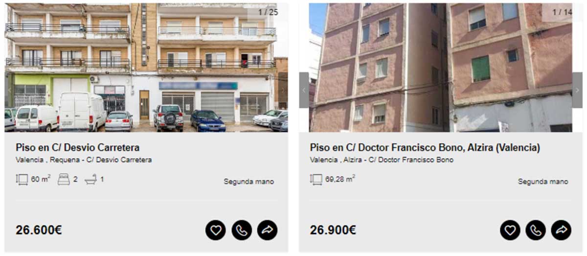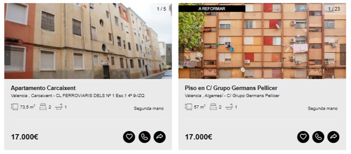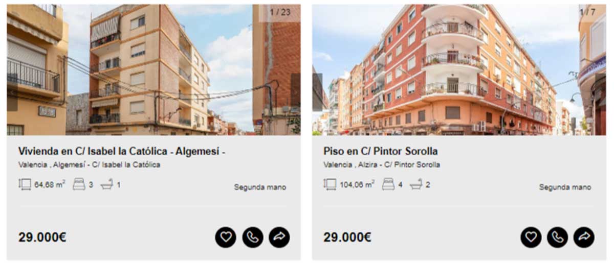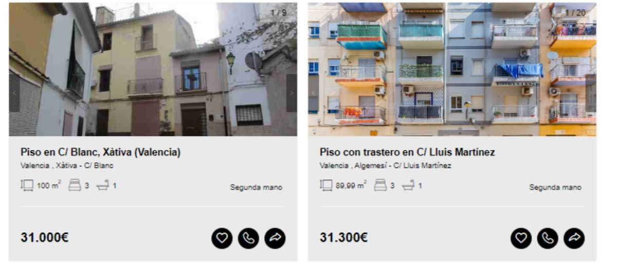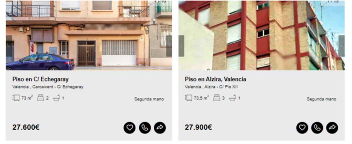 Del total del catálogo, los pisos de Solvia que pueden comprarse a un precio más bajo en la provincia valenciana parten desde los 10.000 euros. A continuación puedes ver algunos ejemplos de estos pisos baratos en Valencia: