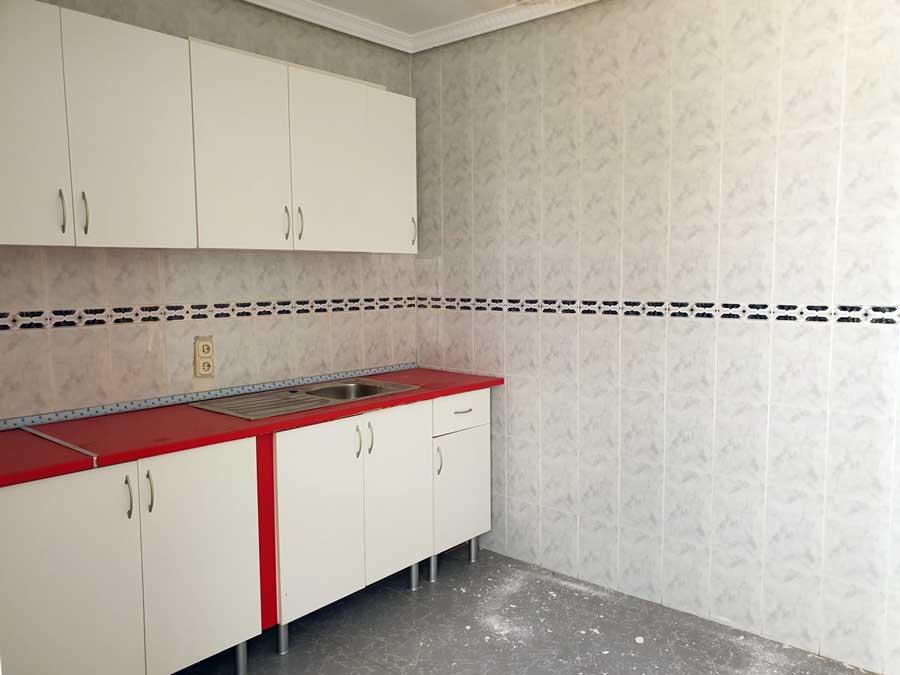 Solvia ha puesto a la venta una vivienda unifamiliar de 93 m² construidos en el municipio de Alcaudete de la Jara, en la provincia de Toledo, con 3 dormitorios, 2 baños, cocina amueblada —como se puede observar en la foto de abajo—, terraza y patio, y todo ello por un precio final de 30.000 euros —tras una rebaja del 3% respecto al precio inicial de 31.000 €—.