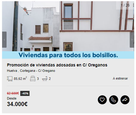 Si tienes un presupuesto más ajustado, también puedes consultar esta otra oferta de Aliseda con chalets adosados a estrenar desde 20.000 euros.