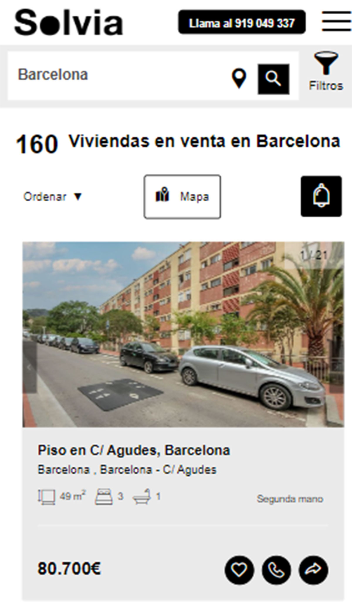 En una horquilla de precios superior, a partir de 80.000 euros, destacan las siguientes viviendas disponibles en Solvia ubicadas en la ciudad de Barcelona: