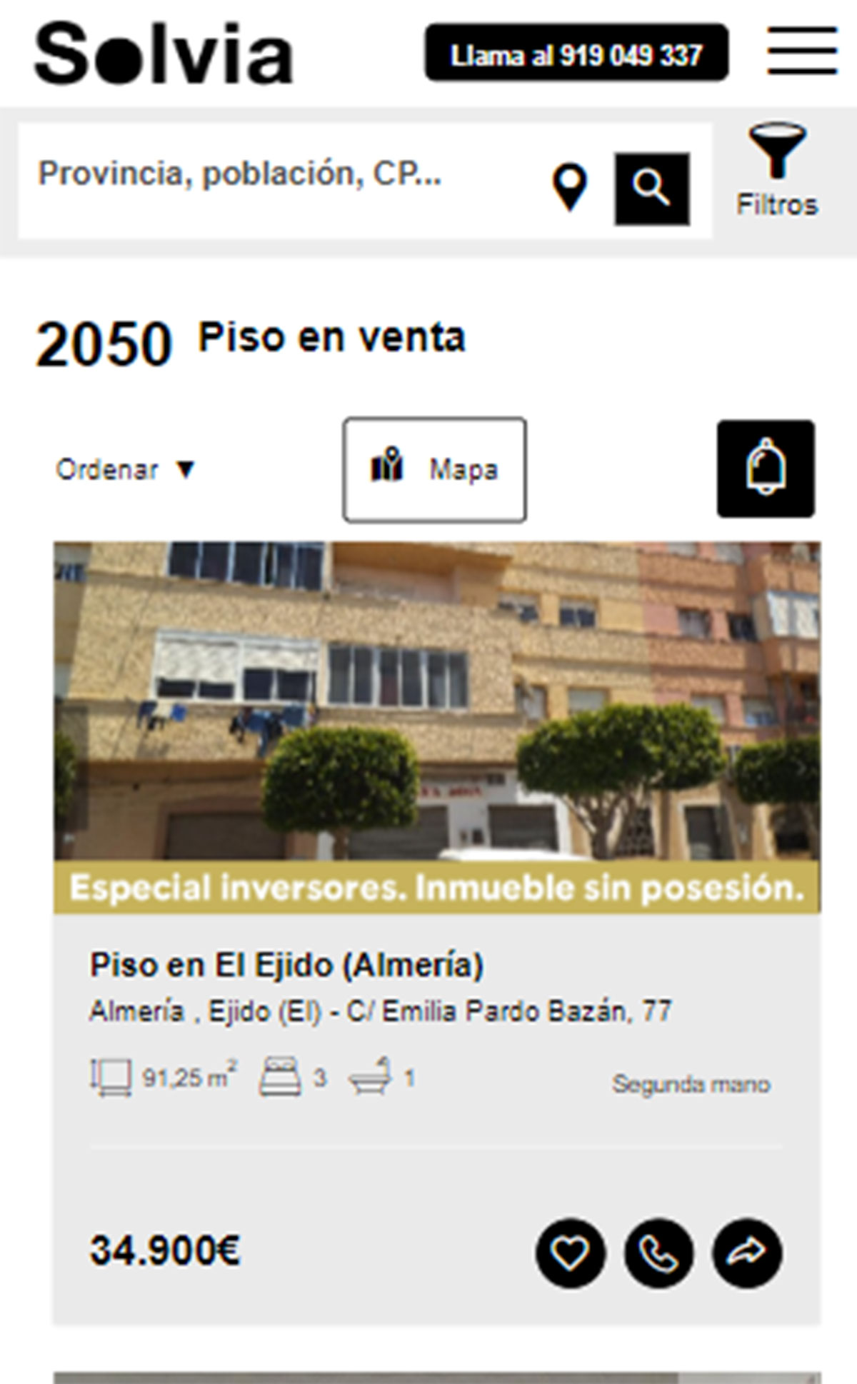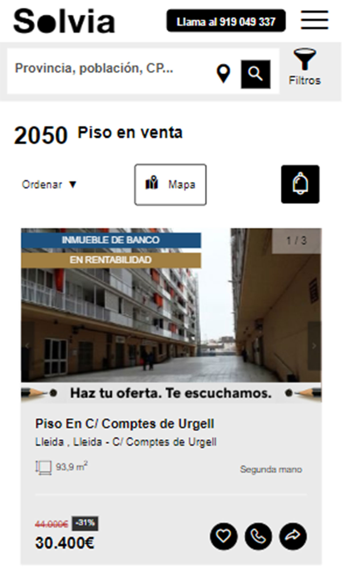 Con precios por encima de los 30.000 euros, pero por debajo de 50.000, destacan los siguientes pisos a la venta en Solvia: