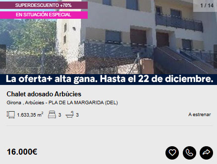 Solvia vende adosado del BBVA a partir de 16.000 euros en adelante. El interesado que puje más dinero por uno de los siguientes inmuebles, se lo lleva.