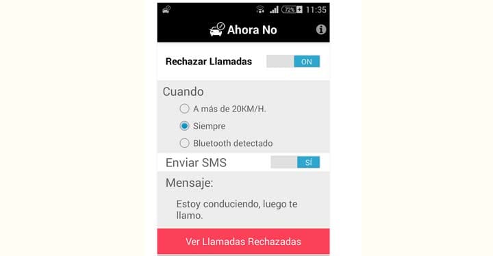 Esta aplicación corta automáticamente las llamadas que recibimos cuando se conduce y también envía un mensaje a la persona que llama para decirle cualquier texto personalizado, como ‘luego te llamo, estoy conduciendo’ o cualquier otro que se quiera configurar con la propia app.