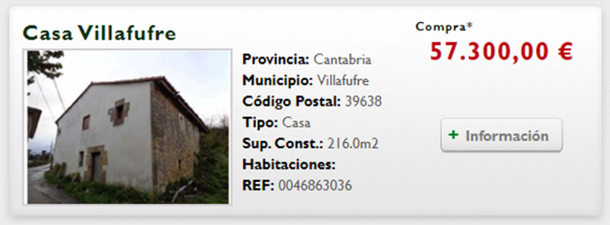 Del total del catálogo, los inmuebles más baratos a la venta cuentan con precios a partir de 29.000 euros. A continuación puedes ver algunas de las viviendas en Cantabria de Unicaja que pueden comprarse a un precio más bajo:
