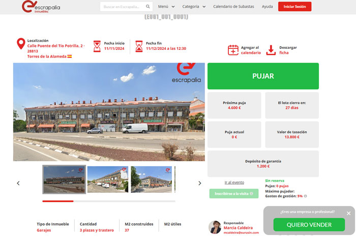 Hasta las 12:30 horas del 11 de diciembre de 2024 estará abierta la subasta para pujar por este lote con un valor de tasación de 13.800 euros. Para poder participar en la subasta, será necesario realizar un depósito de garantía mínimo de 1.200 euros.