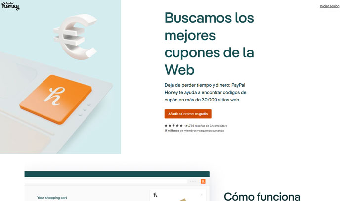 Honey no es una web donde se incluyen cupones de descuento, sino que es una extensión para Chrome. Al igual que la extensión de El Camelizer, esta herramienta permite realizar un seguimiento de productos en la página de Amazon y destacar aquellos que cuentan con un descuento aplicado.