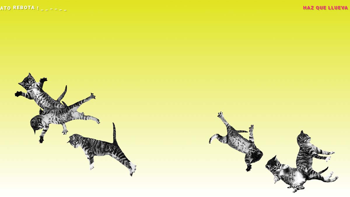 Que las imágenes de gatitos son uno de las grandes protagonistas de Internet no hay duda. Por este motivo existen páginas como Cat Bounce, web en la que hay un montón de gatos que saltan. De hecho, algunos animales saltan más que otros porque tienen más fuerza. Si quieres entretenerte un rato, esta es una de las mejores páginas para hacerlo. Aquí puedes seleccionar los botones de la parte superior de la pantalla para “lluevan más gatos” o para que salten y reboten con más fuerza.