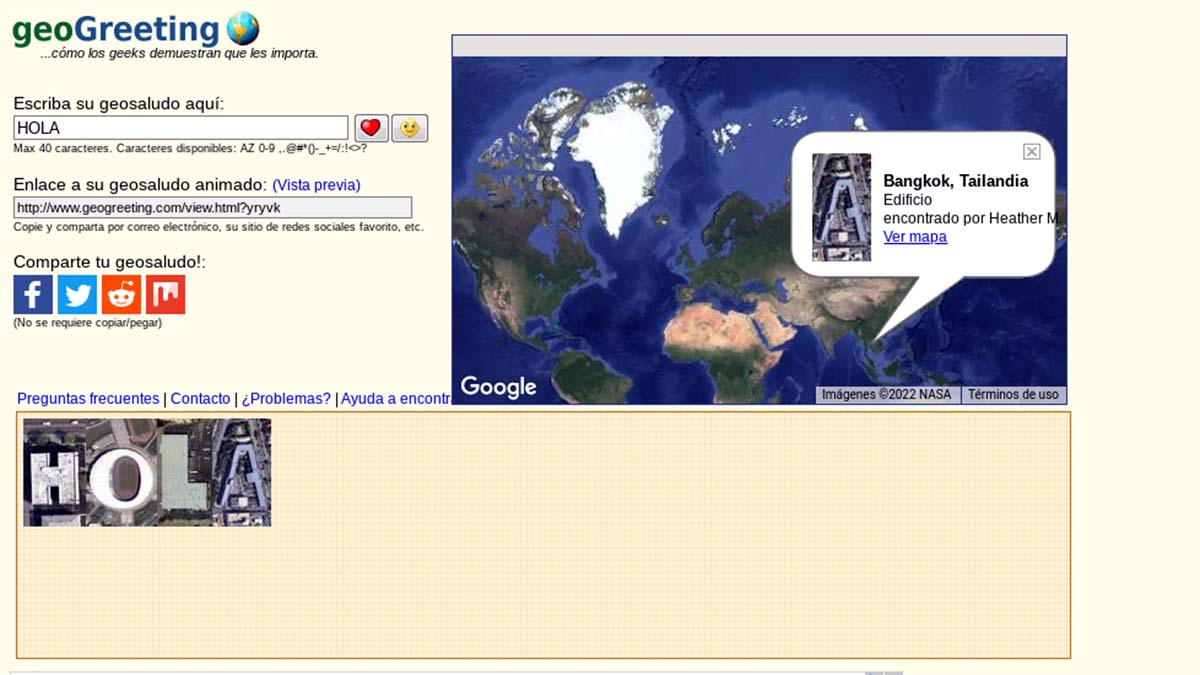 En GeoGreeting puedes escribir tu nombre o cualquier otra palabra. ¿El resultado? Las letras se transforman en edificios y otras estructuras de la calle de Google Maps. En la siguiente imagen te mostramos un ejemplo.